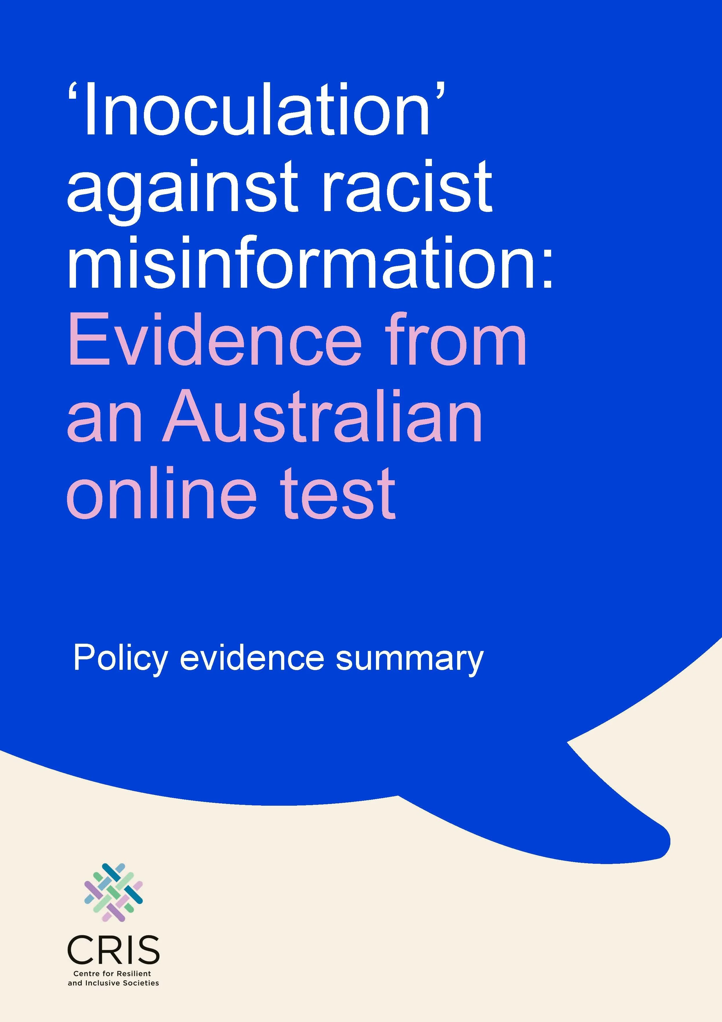 Denson, N., Lee, A., Kamp, A., Mansouri, F., Elias, A., Sharples, R., Sahin, O., Connelly, K., Paradies, Y., McGarty, C. & Dunn, K. (2025) Inoculation against racist misinformation: An Australian online test Policy evidence summary. Centre for Resilient and Inclusive Societies.